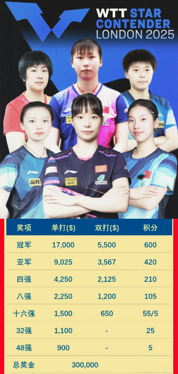 伦敦球星挑战赛设立了30万美元总奖金,这次国乒6人替补小分队能带回多少收入呢?下面让我们细算一下。